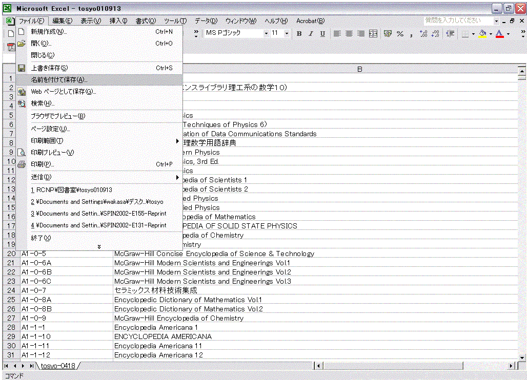 www-in:~>cp ~/tosyo.txt tosyo-030101.txt等とします。 ファイル名に日付等を付加しておくと良いでしょう。