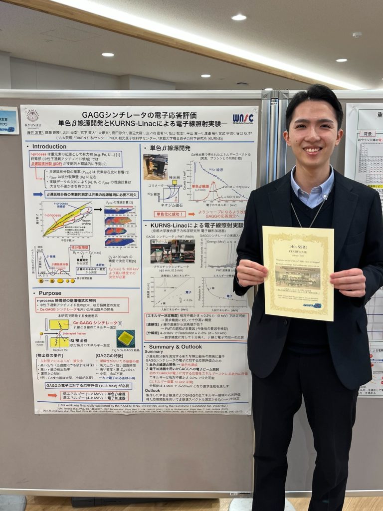 坂口・庭瀬グループ(重元素核)修士2年の藤井友喜さんが、第14回SSRI研究会においてポスター発表賞を受賞しました。